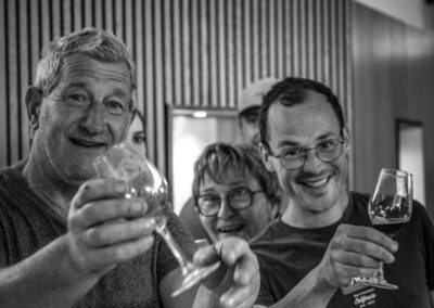 Le Domaine Les Souriants, situé dans le Beaujolais, est dirigé par Maxime Troncy et son beau-frère Damien Polosse. Fondé en 2013 sur 10 hectares familiaux, il s’est agrandi à 18 hectares en agriculture biologique. Maxime et Damien pratiquent une vinification naturelle avec des macérations courtes et un usage minimal de soufre. Leurs cuvées, comme « Sourire au Naturel » et « Sourire de Nouveau », reflètent un style gourmand et fruité, caractéristique du Gamay. Ils diversifient également leur production avec des bulles naturelles, poursuivant ainsi leur engagement vers des vins vivants et accessibles.